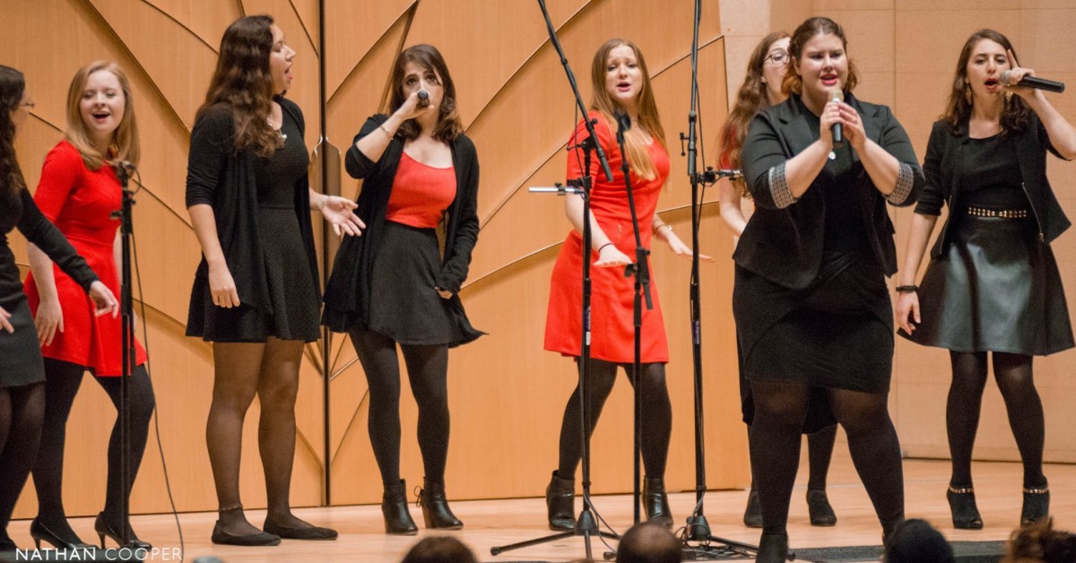 Now almost nine years old, Mezumenet has released two CDs (Mezmerized and Mezzin’ Around) and has regularly participated in Kol HaOlam, the only national Jewish a cappella competition.